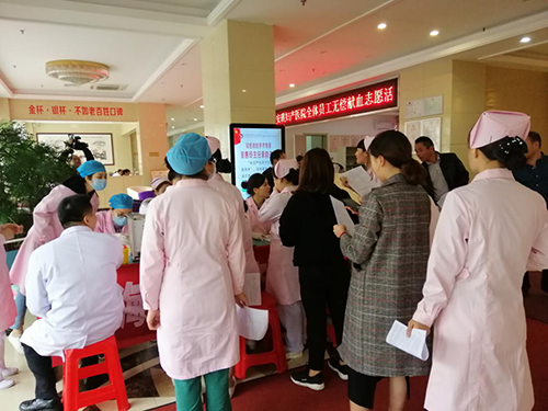 2019年2月28日早上9点,院长钟彦光、廖明云、党委书记陈向勇就带领全院医护人员来到了医院一楼大厅无偿献血处献血车旁,填表、量血压、化验、采血,积极参加到献血活动中,献血处人头攒动,温情融融。