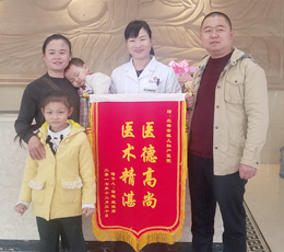 患者吴女士及其家属,于2018年11月14日,将一面锦旗送予不孕不育科向恒新主任及其医护人员,锦旗上“医术精湛•妙手回春”两句话,字字透露出对向主任的感激之情。